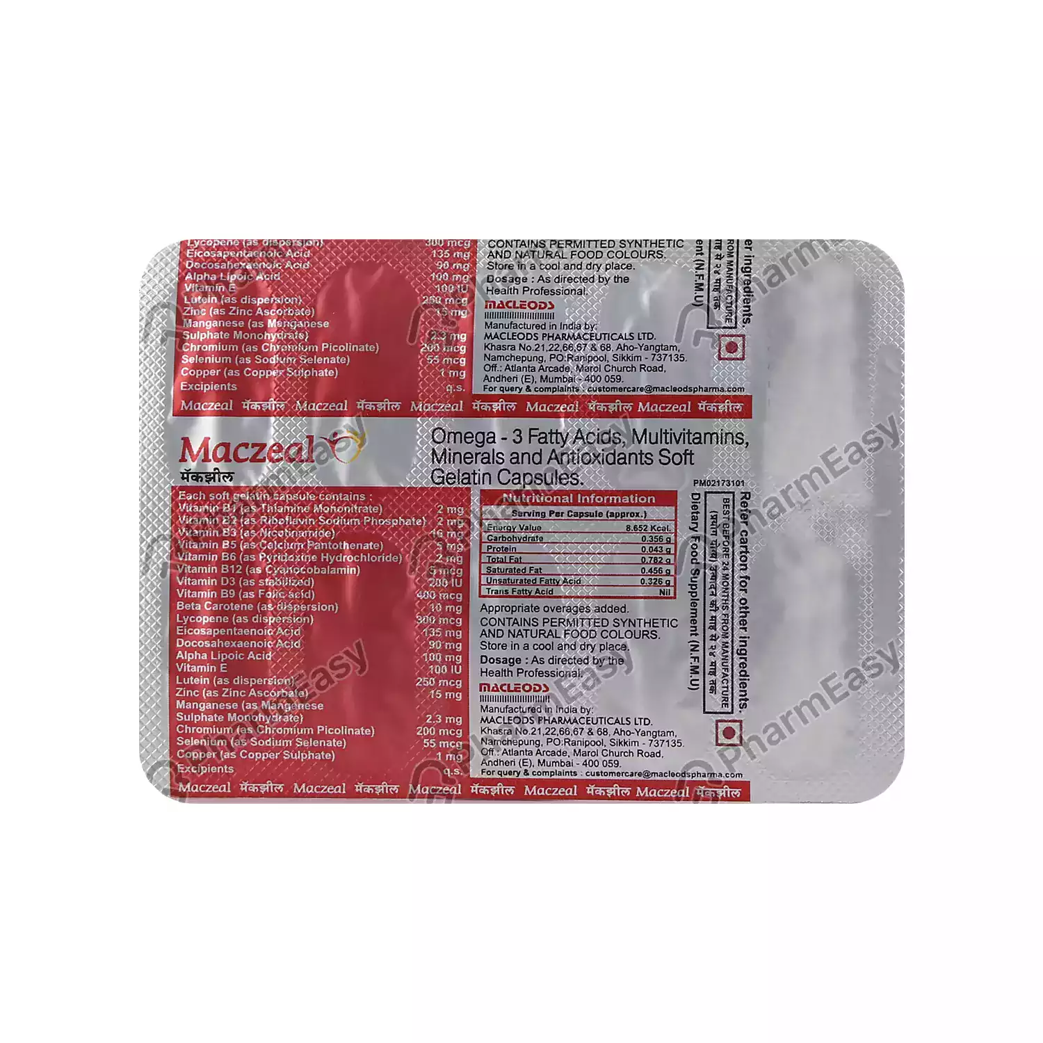 Maczeal Tablet is a multivitamin and multimineral supplement formulated to enhance nerve function, boost metabolism, and improve overall health. It is commonly used in patients with nutritional deficiencies, especially those related to diabetes and nerve-related conditions.