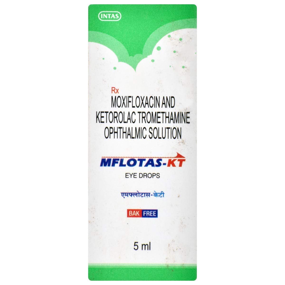 Mflotas KT Eye Drops is a dual-action ophthalmic solution combining an anti-inflammatory drug (Ketorolac) and a broad-spectrum antibiotic (Moxifloxacin). It is commonly prescribed for managing pain, swelling, and infection risk following eye surgery or in acute eye infections.