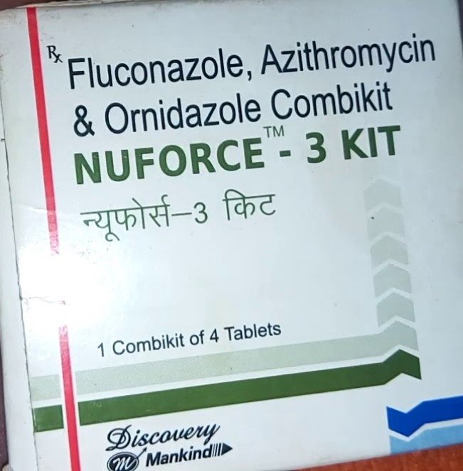 Nuforce 3 Kit is a combination of Fluconazole, Azithromycin, and Secnidazole used to treat mixed vaginal infections caused by fungi, bacteria, and protozoa. It offers broad-spectrum treatment in a single-dose kit.
