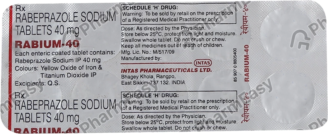 Rabium Tablet contains Rabeprazole Sodium, which decreases the amount of acid produced in the stomach. It is used to treat conditions caused by excessive stomach acid such as gastroesophageal reflux disease (GERD), stomach ulcers, and Zollinger-Ellison syndrome.