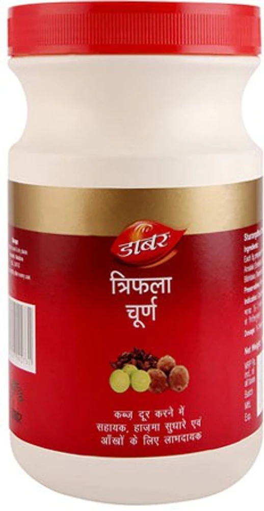 Dabur Triphala Churna is a traditional Ayurvedic formulation crafted using the three rejuvenating fruits—Amla, Haritaki, and Bibhitaki. These ingredients work in synergy to cleanse the digestive system and promote internal balance. It is trusted for its gentle laxative and detoxifying properties.