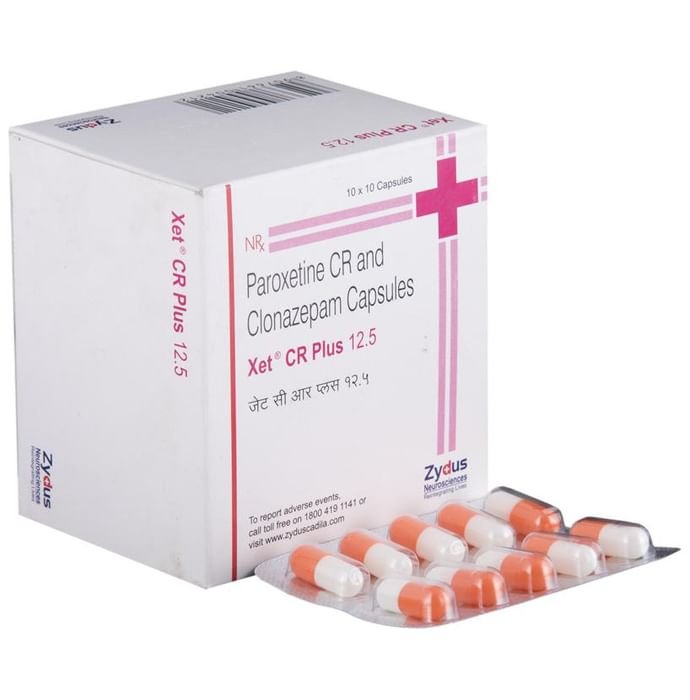 Xet CR Plus 12.5/0.25 Capsule is a prescription medication used to manage depression and various anxiety disorders. It combines Paroxetine, a selective serotonin reuptake inhibitor (SSRI), and Clonazepam, a benzodiazepine. This combination helps balance brain chemicals to improve mood and reduce anxiety symptoms.